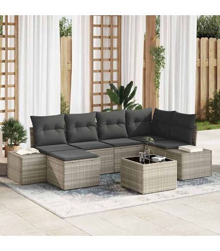 vidaXL Hagesofa Set med pute 7 pcs Lysegrå Poly rattan