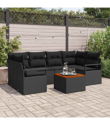 vidaXL Hagesofa Set med pute 7 pcs Svart Poly rattan