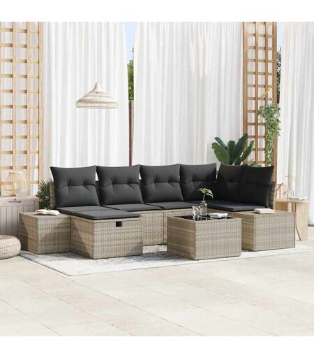 vidaXL Hagesofa Set med pute 7 pcs Lysegrå Poly rattan