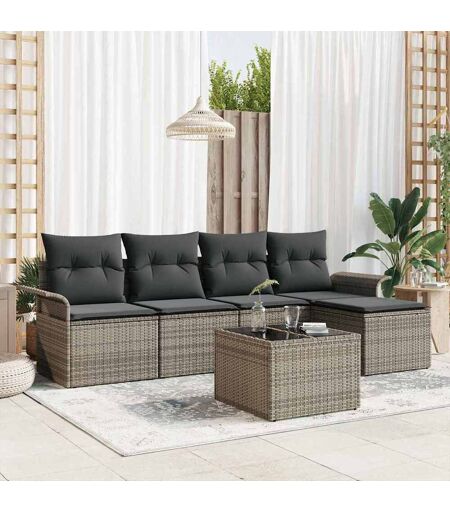 vidaXL Hagesofa Set med pute med lagring 6 pcs Grå Poly rattan
