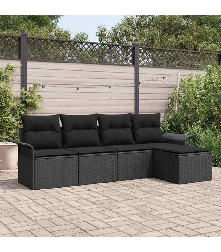 vidaXL Hagesofa Set med pute med lagring 5 pcs Svart Poly rattan