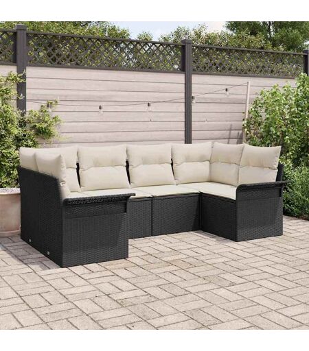 vidaXL Hagesofa Set med pute med lagring 6 pcs Svart Poly rattan