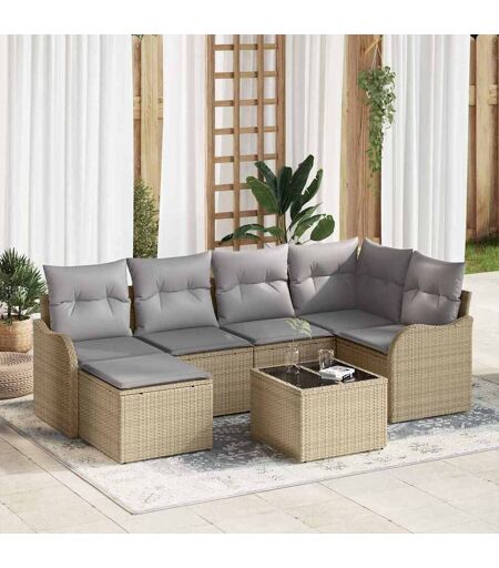 vidaXL Hagesofa Set med pute 7 pcs beige og lysegrå Poly rattan