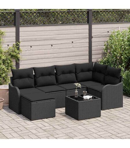 vidaXL Hagesofa Set med pute 7 pcs Svart Poly rattan