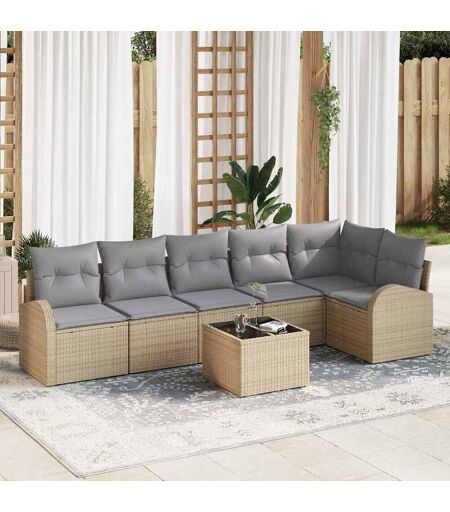 vidaXL Hagesofa Set med pute 7 pcs beige og lysegrå Poly rattan