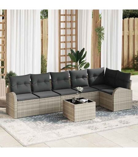 vidaXL Hagesofa Set med pute 7 pcs Lysegrå Poly rattan