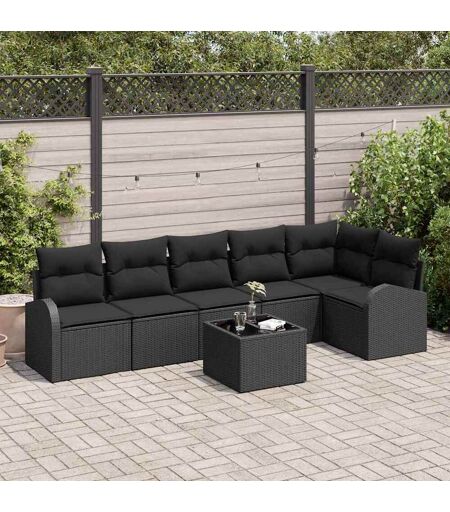 vidaXL Hagesofa Set med pute 7 pcs Svart Poly rattan