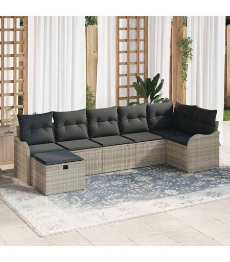 vidaXL Hagesofa Set med pute med lagring 7 pcs Lysegrå Poly rattan