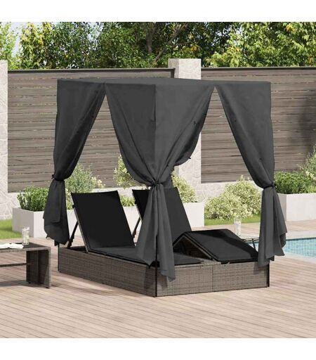 vidaXL Dobbel Solseng med Tak Grå 205 x 129 x 200 cm PE rattan