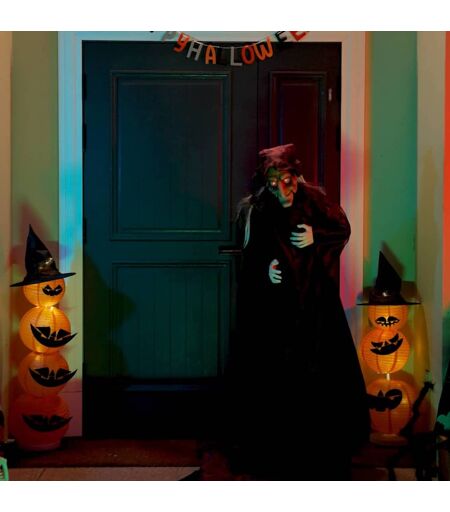 Halloween Pratetrollet er en spennende sesongdekorasjon som passer perfekt for alle som elsker Halloween. Den imponerende størrelsen på 125 x 216 cm gjør at denne figuren i slitesterk polyester virkelig skiller seg ut med sin gotiske sjarm. Den uhyggelige lilla fargen gjør den til et blikkfang i enhver innendørs Halloween-utstilling. Den er laget for å skape en dramatisk effekt, og er super til underholdningsrom eller stuer, og gir en spektakulær stemning til sammenkomsten. Materialer: Laget av høy kvalitet polyester og plast, gir Halloween Pratetrollet et holdbart og iøynefallende utseende. Polyester bidrar til fleksibilitet, noe som gjør at den tåler innendørs bruk over tid, samtidig som de gotiske detaljene holder seg flotte. Inkluderte komponenter: I pakken får du 1 Halloween Pratetroll, med LED-øyne, batteridrevet funksjon og bevegelige deler, som gjør den til en engasjerende del av dekorasjonen. Hver detalj er omhyggelig designet for å smelte sømløst inn i det skumle oppsettet. Egenskaper / Funksjon / Design: Interaktivitet er kjernen i dette designet med maksimalt fokus på lyd- og bevegelsesaktivering. Når folk passerer innen 50 cm, vekkes den til liv med skumle lyder, blinkende øyne og en bevegelig kjeve, noe som gir en oppslukende opplevelse som passer perfekt til den hjemsøkte stemningen. Anbefalte bruksområder: Denne heksen kan være midtpunktet i enhver Halloween-dekorasjon, enten i stuen til fester eller som et frittstående skummelt kunstverk. Det fleksible designet gjør at den kan integreres i tette dekorasjoner eller stå alene som et skrekkfullt element for å få oppmerksomhet. Vedlikehold: Hold den unna ild for å unngå skader og bevare de detaljerte kvalitetene. Oppbevar den forsiktig i lavsesongen for å sikre at denne Halloween-vennen er klar for mange sesonger med skumle opplevelser. ...