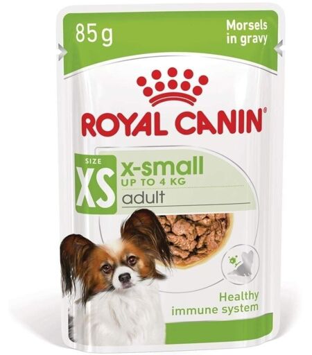 Royal Canin X-small Adult Pouch 12x85g Royal Canin X-small Adult Pouch er et komplett fôr spesielt utformet for voksne hunder av små raser. Dette næringsrike og smakfulle våtfôret inneholder alle de nødvendige næringsstoffene som hunden din trenger for god helse. Det høye væskeinnholdet bidrar til å opprettholde god væskebalanse, og nøye utvalgte ingredienser sikrer en smaksrik og balansert kost. Sammensetning: Kjøtt og animalske produkter Korn Olje og fett Vegetabilske produkter Mineralstoffer Forpakningsinnhold: 12 poser, 85 g i hver pose ...