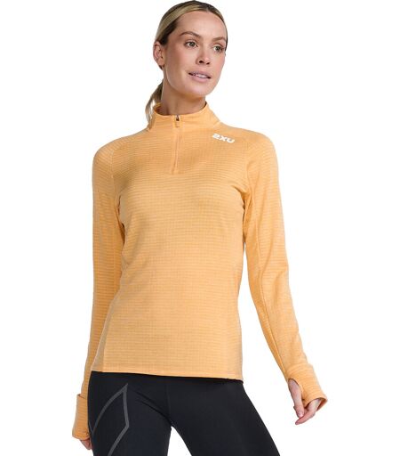 2XU Women's Ignition 1/4 Zip Peach/White Reflective XS