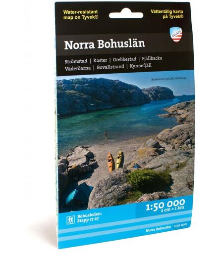 Calazo Nord-Bohuslän er et solidt sjø- og kystkart i skala 1:50000 over Nord-Bohuslän. Dobbeltsidet trykk på slitesterkt Tyvek-materiale. Calazo lager kart som trykkes på Tyvek-materialet. Tyvek er et plastmateriale som tåler å bli brettet nesten ubegrenset antall ganger. Det tåler også vann og er veldig slitesterkt og lett.Med et kart trykt på Tyvek får du et kart som varer veldig lenge og som du ikke trenger å være så nøye med. Calazos kart er dobbeltsidige, det vil si at kartet er trykket på begge sider.Dette kartet er et sjø- og kystkart i skala 1:50000 og passer for ulike aktiviteter. Kanskje i første omgang for deg som oppholder deg på eller ved vannet. Perfekt for kajakk- og kano-padling. Kartet passer selvfølgelig også utmerket for turer, soppplukking, terrengsykling og mer.Kartet dekker området: Strömstad - Koster - Grebbestad - Fjällbacka - Väderöarna - Bovallstrand - Kynnefjäll. Med andre ord flere ekte perler for kajakkelskere. Fjällbacka og Koster-skjærgården er definitivt blant våre aller fineste skjærgårder. Egenskaper for Calazo Nord-Bohuslän: • Format: 70x100 cm. • Skala: 1:50000 • Materiale: Tyvek ...