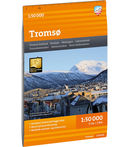 Turkart Tromsø 1:50.000 fra Calazo förlag. Med kartvisninger på både for- og baksiden dekker dette kartet store deler av området i Tromsøregionen som er perfekt for ski og fjellturer. Kartet dekker alle de mest populære fjellområdene på Tromsø fastland, Malangen og Kvaløya, med klassikere som Tromsdalstinden (1238 moh.), Skittentinden (1042 moh), Buren (802 moh), samt tilgengelige hytter. Dette er en del av den moderne kartserien fra Calazo, med unik terrenginformasjon basert på laserskanning fra fly og bedre nøyaktighet i detaljene. Vi har blant annet brukt detaljerte flyfoto til å korrigere alle stier i området. Vi har også identifisert og lagt til mange stier som manglet i de offisielle databasene.Det viser også markerte turruter i området, og fungerer like godt om vinteren med merkede vinterruter og preparerte skiløyper. ...