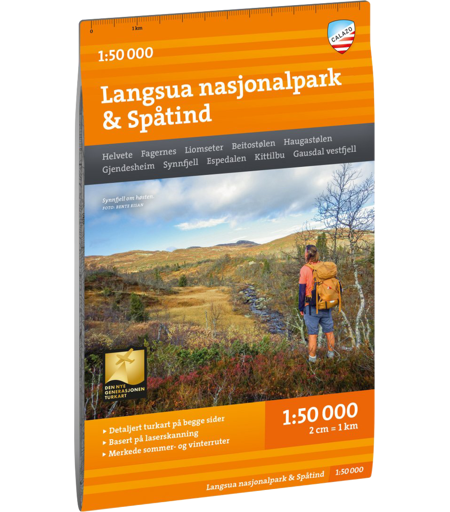 Turkart Langsua Nasjonalpark & Spåtind 1:50.000 fra Calazo förlag. Med kartvisninger på både for- og baksiden dekker dette kartet hele Langsua nasjonalpark med korte og lengre turer. Kartet dekker alle de mest populære fjellområdene, med hytter som drives både av DNT og andre aktører. Det viser også markerte turruter i området, og fungerer like godt om vinteren med merkede vinterruter og preparerte skiløyper. Kartet passer godt for en tur til Spåtind 1414 (moh), Ormtjernkampen (1128 moh) eller Heimdalshøi (1843 moh).Dette er en del av den moderne kartserien fra Calazo, med unik terrenginformasjon basert på laserskanning fra fly og bedre nøyaktighet i detaljene. Vi har blant annet brukt detaljerte flyfoto til å korrigere alle stier i området. Vi har også identifisert og lagt til mange stier som manglet i de offisielle databasene. ...