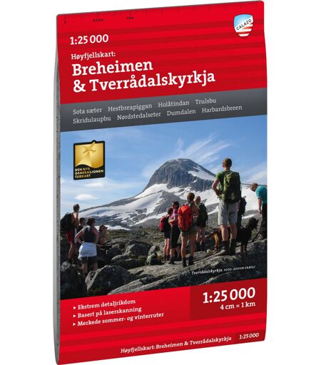 Høyfjellskart Breheimen & Tverrådalskyrkja 1:25 000 er en del av den moderne kartserien fra Calazo förlag med en detaljrikdom som aldri tidligere er vist over Breheimen. Terrenginformasjonen i kartet er basert på nye data innhentet fra laserskanning fra fly. Fjellskrenter, vassdrag og breer og andre naturelementer vises mye mer detaljert med denne teknologien. Kartet inneholder også flere stier enn noe kart tidligere over samme område. Et kart i målestokk 1:25 000 gir god støtte til deg som går på topptur, driver med brevandring eller på andre måter forlater de merkede stiene i dalbunnen og finner egne ruter oppe i høyfjellet. Det er laget i materialet Tyvek, som tåler vann, er beskyttet mot rifter og har lav vekt. ...