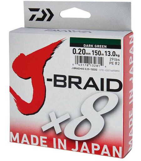 Daiwa J-Braid X8 sene, multifilament - 300 meter. Med ultratynne materialer er J-Braid en supermyk og glatt multisene, perfekt for lange kast. Vevingen med 8 tråder resulterer i meget høy sirkulæritet og en superglatt overflate som bidrar til lengre kasteavstand samt roligere vandring gjennom ringene og på spolen. Sammenlignet med mange fletteliner ute på markedet, leverer J-Braid ultralav strekk og høy bruddstyrke takket være japanskproduserte materialer av høy kvalitet. Anbefalt knute: Palomarknute, fireline-knute. Spesifikasjoner Spole: 300 meter. Farge: Dark Green. Produsert og utviklet i Japan. Bruddstyrke: 0.10 mm - 5,9 kg. 0.13 mm - 8,1 kg. 0.16 mm - 9,1 kg. 0.18 mm - 12,0 kg. 0.20 mm - 13,1 kg. 0.22 mm - 17,0 kg. 0.24 mm - 18,1 kg. 0.28 mm - 26,3 kg. Multifilamentsene Multifilamentsene, braid og flettet sene er navn på denne type sene. Denne type sene har ingen strekk og du vil kjenne det minste napp, sena har svørt høy bruddstyrke i forhold til senetykkelse. På grunn av tykkelsen får du også ofte plass til mye sene på spolen sammenlignet med tilsvarende monosene. Mange skjøter på en fortom av mono eller fluorcarbon for tilføre litt strekk og redusere synlighet og slitestyrke i enden av snøret. Tips: Bruk alltid fortom! Under fiske med multifilament sene og Fused line bør sjokkfortom alltid brukes da dette gir mindre synlighet frem mot pilk, sluk, spinner og wobbler. Med sjokkfortom oppnår du i tillegg litt strekk når fisken raser avgårde. En fortom tåler også mer direkte kontakt mot skarpe fisketenner og bunn enn multifilament sene og fused line. ...