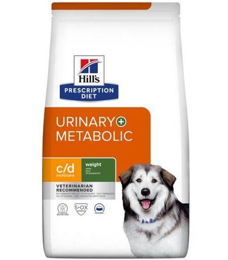 HILL'S PD-C C/D MULTICARE + METABOLIC - 1.5 & 12 kgSelv litt ekstra vekt kan påvirke hundens livskvalitet og forholdet dens til familiemedlemmene ettersom den ekstra vekten kan redusere leketid, påvirke bevegelighet og negativt påvirke hundens generelle livslange helse. Man kan forbedre hundens forventede levealder ved å opprettholde hundens idealvekt ettersom det reduserer risikoen for vektrelaterte tilstander.Hill's ernæringsfysiologer og veterinærer utviklet Prescription Diet c/d Multicare + Metabolic klinisk ernæring for å bidra til å håndtere din hunds urinveishelse og vekt. Faktisk er c/d Multicare + Metabolic ernæring spesielt formulert for å redusere risikoen for dannelse av kalsiumoksalat- og struvittsteiner OG er ernæring klinisk bevist å redusere kroppsvekt. Hvordan det fungerer:Kontrollerte nivåer av mineraler for å bidra til å opprettholde urinveishelse.Støtter et optimalt blæremiljø for fremtidig urinveishelseSynergisk blanding av ingredienser for din hunds metabolisme Hvordan det hjelper:Formulert for å bidra til oppløsning av struvittstein i blærenBidrar til å opprettholde en sunn blæreErnæring som støtter vektreduksjon Tilleggsinformasjon:Hill's Prescription Diet c/d Multicare + Metabolic tørrfôr til hund støtter urinveishelse samtidig som det gir hunden din all næringen den trenger under vektreduksjon og vedlikehold av en sunn vekt. Spør din veterinær hvordan våre Prescription Diet-fôr kan gi din hund et lykkelig og aktivt liv. ...