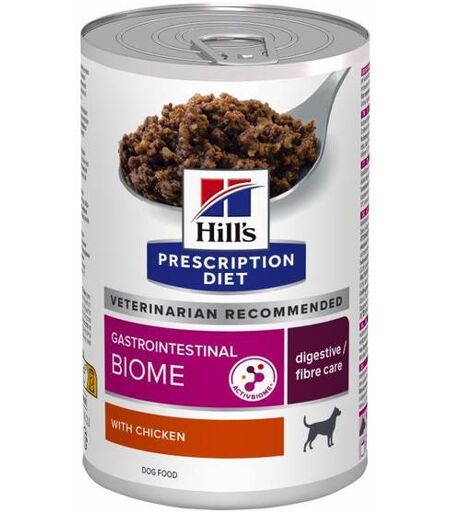 HILL'S PRESCRIPTION DIET GASTROTINTESTINAL BIOME - CHICKEN (345G)Hill's Prescription Diet Gastrointestinal Biome våtfôr for hunder gir all den ernæringen din hund trenger.Reseptbelagt diett Gastrointestinal Biome hundefôr er et lettfordøyelig komplett diettfôr for å redusere tarmabsorpsjonsforstyrrelser og for å kompensere for dårlig fordøyelse hos hunder. Dette fiberforsterkede fôret har et økt nivå av natrium og kalium og lett fordøyelige ingredienser. ...
