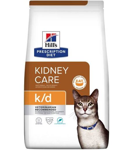 HILL'S PD-F K/D KIDNEY CARE M/ TUNFISK - 1.5 eller 3kgNår katter har skade på nyrevevet, fungerer ikke nyrene like godt som før. Tilstanden er ikke reversibel, men man kan bremse progresjonen. Diettfôr for nyresykdommer er designet for å redusere arbeidsmengden til nyrene, som gjør det mulig for dem å fungere mer effektivt. Katter med redusert nyrefunksjon kan miste appetitten og fôrinntaket kan gå ned.Hill's ernæringsfysiologer og veterinærer har utviklet Hill's Prescription Diet k/d klinisk ernæring for å bidra til å beskytte din katts livsviktige nyrefunksjon, øke appetitten og øke fôrinntaket. Dette tørrfôret er laget med tunfisk og har en uimotståelig smak som katten din vil elske. Faktisk er Prescription Diet k/d klinisk dokumentert ernæring som øker og forlenger livskvaliteten. Hvordan det fungerer:Kontrollerte fosfornivåer og lavt natriuminnhold, beriket med omega-3-fettsyrer fra fiskeoljeEnhanced Appetite Trigger (E.A.T.)-teknologi for katterHøye nivåer av essensielle aminosyrer og L-karnitin Hvordan det hjelper:Bidrar til å beskytte vitale nyrefunksjonerStimulerer appetitt og øker fôrinntakStøtter naturlig evne til å bygge og opprettholde sunn muskelmasse Tilleggsinformasjon:Hill's Prescription Diet k/d tørrfôr til katt med tunfisk er et komplett og balansert fôr som gir katten din all næringen den trenger. Spør din veterinær hvordan våre Prescription Diet-fôr kan gi din katt et lykkelig og aktivt liv.For de beste resultatene, og for å få full effekt av produktfordelene, er det nødvendig med fôring over en lengre periode med dette produktet.k/d tørrfôr, våtfôr og porsjonsposer kan blandes eller fôres om hverandre. ...