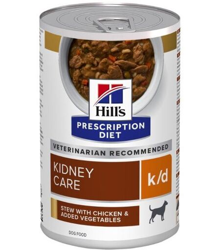 HILL'S PRESCRIPTION DIET K/D KIDNEY CARE - CHICKEN&VEGETABLES; (354G)Nyrene filtrerer avfallstoffer og toksiner fra blodet og opprettholde normal væske- og mineralbalanse i kroppen. Når hunder blir eldre kan nyrevev brytes ned. Denne prosessen er irreversibel og vil føre til ytterligere tap av nyrefunksjon. Hunder med nyresykdom kan også få dårlig appetitt så kaloriinntaket reduseres, dette kan føre til tap av muskelmasse.Hill’s veterinærer og ernæringseksperter har utviklet Prescription Diet k/d klinisk ernæring for å støtte din hund sin nyrehelse. Det er klinisk dokumentert at Prescription Diet k/d gir et lengre liv med bedre livskvalitet.Denne uimotståelige Prescription Diet stuingen med møre biter av kylling og tilsatte grønnsaker er det en glede å gi til din hund. Hvordan det fungerer:Riktig nivå av proteiner som er av høy kvalitetKontrollert nivå fosforLavt nivå av natriumKompleks som støtter sunn muskulatur Hvordan det hjelper:Støtter nyre og hjertefunksjonStøtter vitalitet og gir energiStøtter appetitt og matgledeStøtter optimal kroppshold Tilleggsinformasjon:Hill's™ Prescription Diet™ k/d™ hundefôr er et komplett diettfôr som inneholder all næring din hund behøver. Spør din dyrlege om hvordan Hill's™ Prescription Diet™ kan gi din hund et langt og lykkelig liv. ...