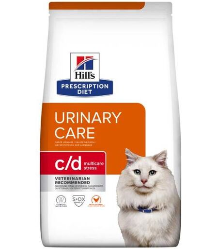 HILL'S PD-F C/D MULTICARE & STRESS - 1.5, 3, 8 eller 12kgEn sunn blære begynner med riktig balanse av vitale næringsstoffer. Overskuddsmineraler kan øke dannelsen av krystaller i urinen, som kan lede til dannelse av blærestein. Disse kan videre føre til ubehag og lede til mer alvorlige problemer som krever tilsyn av veterinær. Stress har også blitt vist å ha en negativ innvirkning på blærehelse.Hill's ernæringsfysiologer og veterinærer har utviklet Prescription Diet c/d Multicare Stress diettfôr spesielt formulert for å støtte kattens urinveishelse samtidig som det bidrar til å håndtere stress. Faktisk er c/d Multicare Stress klinisk bevist å senke gjentakelsesraten av de mest vanlige urinveisproblemene med 89 %. Dette tørrfôret er laget med kylling og har en uimotståelig smak som katten din vil elske. Hvordan det fungerer:Med L-tryptofan og melkeproteinhydrolysat for å kontrollere stressFremmer ønskelige pH-nivåer i urinKontrollerte nivåer av kalsium og natrium, og tilsatt kaliumsitrat Hvordan det hjelper:Formulert for å redusere stress, en risikofaktor for vanlige urinveissymptomerFormulert for å løse opp struvittsteiner på så lite som 7 dager (gjennomsnittlig 27 dager)Reduserer langvarig risiko for struvitt- og kalsiumoksalatsteiner ved daglig fôringS+OXSHIELD: Formulert for å fremme et urinmiljø som reduserer risikoen for dannelse av struvitt- og kalsiumoksalatkrystaller Tilleggsinformasjon:Hill's Prescription Diet c/d Multicare Stress tørrfôr til katt er et komplett og balansert fôr som gir katten din all næringen den trenger. Spør din veterinær hvordan våre Prescription Diet-fôr kan gi din katt et lykkelig og aktivt liv. ...