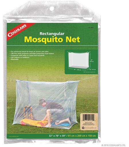 Mosquito Net Single er en rektangulær myggnett fra Coghlan's som passer over en sovepose eller telt- seng. 180 cm polyester mesh sikrer at alle insekter holdes borte. Det kan henges opp mellom noen trær eller festes på innsiden av et telt. Kan vaskesKan brukes både utendørs og innendørsStørrelse: 81 x 200 x 150 cm ...