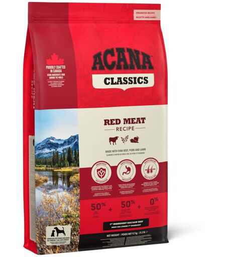 Egenskaper Fôret er fylt med næringsrike kjøttproteiner og omega 3-fettsyrer, uten høyglykemisk korn. Classic Red inneholder lavglykemisk spesialskåret havre for å opprettholde stabile blodsukkernivåer og hjelpe med å redusere risikoen for fettakkumulering. 1/3 av kjøttet i Acana er ferskt, og tilfører derfor viktige næringsstoffer i sin mest næringsrike form mens 2/3 tørkes for å gi en sterk og naturlig kilde til kjøttproteiner. Et smaksrikt fôr hunden din kommer til å elske! Rasjonering Se detaljert rasjonering på pakken. Rasjoneringen til høyre brukes til å beregne forbruk ved abonnering på fôr. Bruk Fôr for alle hunder ...