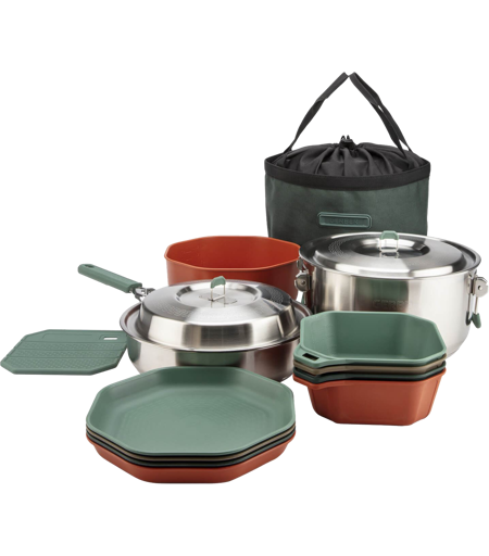 ComplEAT Cook Set fra Gerber er et matlagingssett for deg som elsker camping og friluftsaktiviteter. Settet tilbyr en komplett løsning for matlaging og servering ved leirbålet, med et stort antall funksjonelle deler som gjør det enkelt å lage mat for hele familien eller en gruppe venner. ComplEAT Cook Set er et høykvalitets matlagingssett for camping, designet for å gi en fullstendig matlagingsopplevelse. Settet inneholder alt du trenger for å både forberede, lage og servere måltider under dine utendørseventyr. Med en generøs størrelse på både stekepanne og gryte, sammen med et 3-lags basemateriale for jevn varmefordeling, er dette settet et godt valg for alle som søker funksjonalitet og pålitelighet. Alle delene pakkes kompakt i en praktisk oppbevaringsveske, noe som gjør det enkelt å transportere og oppbevare. Perfekt for å lage store måltider, gir dette matlagingssettet en følelse av hjemmet selv i naturen. Inneholder stekepanne, avtagbart håndtak, lokk med bastingkuppel, gryte, smalt lokk, 4 tallerkener, 4 boller, blandingsbolle, varmeplate og oppbevaringsveske 2,6 liter stekepanne i rustfritt stål, 25,4 cm x 6,35 cm 20,3 cm avtagbart håndtak i rustfritt stål med silikonbelegg Rustfritt stål lokk med bastingkuppel, 25,4 cm x 3,8 cm 5,6 liter gryte i rustfritt stål, 25,4 cm x 12,7 cm Grytens håndtak låses på plass og forblir svale under bruk Smalt lokk i rustfritt stål, 25,4 cm x 1,3 cm Polypropylen boller, 17 cm x 6,6 cm, farger: Baltic Haze, Dark Baltic Haze, Burnt Orange, Coyote Brown Polypropylen tallerkener, 22 cm x 2,5 cm, farger: Baltic Haze, Dark Baltic Haze, Burnt Orange, Coyote Brown Polypropylen blandingsbolle, 22,4 cm x 18,1 cm, Burnt Orange Boller med volumetriske markeringer og forsterkede kanter for enkel grep Blandingsbolle med volumetriske markeringer, nyttig for både forberedelser og servering Silikonvarmeplate, 16 cm x 16 cm, Baltic Haze Stekepanne og gryte er kompatible med induksjon-, elektriske og keramiske komfyrer samt åpen ild Tåler oppvaskmaskin: Stekepanne, gryte, lokk, tallerkener, boller Trygge for mikrobølgeovn: Tallerkener, boller ...