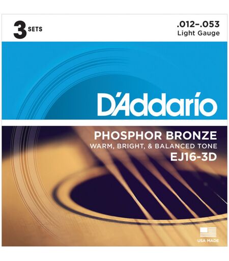 DAddario EJ16-3D Phosphor Bronze Light 12-53 x 3 Pack