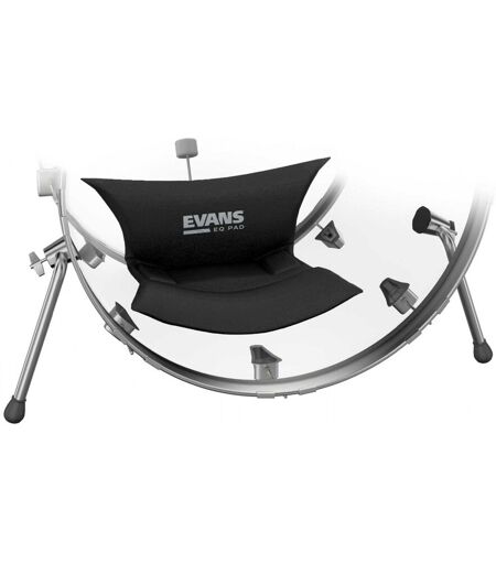 Evans Bass Muffling EQ Pad er et svært nyttig utstyr. Kan festes og justeres via borrelåsstropper og du kan plassere dette inne i bastromme for en kraftigere og mer avrundet tone og fjerne uønskede resonanser. En hengslet pad mot slaghodet spretter slik at angrepet kan komme igjennom før du kommer tilbake for å dempe hodet. Hvis den brukes på en trommel med mindre dybde kan en sekundær pad i motsatt ende gjøre det samme. Et visuelt usynlig men sonisk fremtredende verktøy. ...