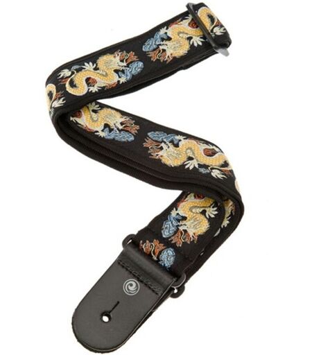 D'Addario Woven gitar Strap Dragon holder gitaren din sikkert under live og spillejobber så du trenger ikke å bekymre deg for å slippe den dyrebare gitaren din. Du kan justere denne D'Addario-stroppen fra 35 '' til 595 '' for å oppnå den perfekte passformen for deg og gitaren din. De sterke og sikre skinnendene gir eksepsjonell holdbarhet. Denne stroppen har en unik mytisk kinesisk drage-design som passer til enhver musikksjanger. ...