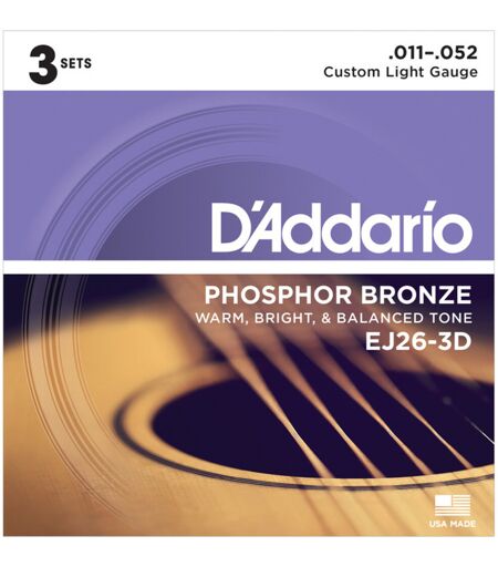 DAddario EJ26 3D Phosphor Bronze Custom Light 11-52 x 3 Pack