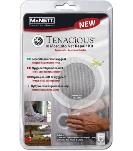 Reparasjonssett fra Gear Aid/McNett som raskt fikser revner og hull i alle typer myggnetting. Settet inneholder transparente taperinger og myggnettstoff, nok til å dekke hull eller rifter opp til 7 cm. Plasser stofflappen over reparasjonsstedet og forsegl med taperingen. Ingen tørketid eller ...