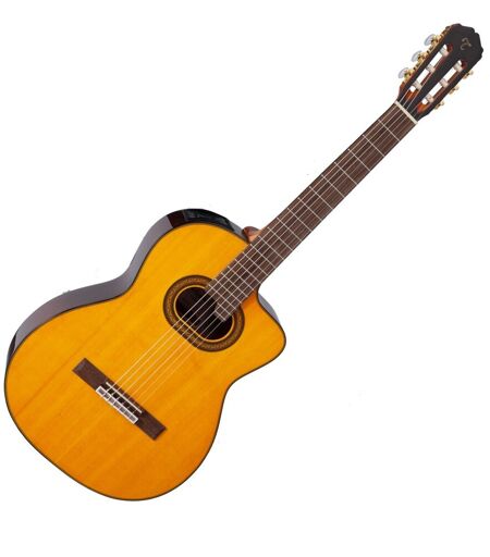 Takamine GC6CE-NAT Electro Acoustic er en raffinert og lettspillende gitar i klassisk stil. Med en moderne tilnærming til spillbarhet med sin cutaway form og ovale lydhulldesign får du den klassiske varme nylonlyden matchet med en contemporary følelse. Og når det gjelder tonene gir en solid grantopp en glitrende high end med suveren artikulasjon - som gjør at hver tone skiller seg ut. Sammen med disse balanserte lydene er en vokalprojeksjon som stammer fra den langstrakte lydhulldesignen så du vil ikke ha noe problem å bli hørt spille akustisk. Og for de gangene du trenger å koble til for ekstra volum eller enkelt opptak oversetter TP-4T Takamine -elektronikken nøyaktig din naturlige lyd til forsterkeren eller DAW. Toppet med en attraktiv glanset finish er GC6CE ideell for alle spillere. ...