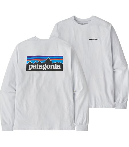 Patagonia Men's Longsleeve P-6 Logo Responsibili-Tee White M