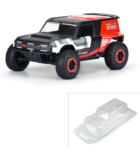 product details key features fully licensed ford® bronco r clear body transform your short course truck into a true off-road racer based on ford’s® race prototype truck capable of taking on the baja 1000 add-on spoiler and rear cage/taillights included made in the usa, since 1982 in the box (1) ford® bronco clear body (1) window masks (5) hardware (1) decal sheet overview pro-line is proud to bring you ford®'s latest race prototype vehicle for your short course truck: the bronco r clear body! the bronco r was designed for ultimate off-road performance capable of taking on the baja 1000 and now you can have your own version for your sc truck. the bronco r body takes design cues from the new 2021 bronco but has large fenders to allow for true off-road tires. the body comes clear so you can customize the look with your own paint scheme and includes an add-on rear spoiler and add-on rear bumper with taillights just like the full-size truck. the bronco r body will completely transform your sc truck into a true off-road racer. own a piece of off-road racing history; get your own pro-line bronco r race prototype vehicle clear body today! don't forget to submit your finished pro-line body to reader's rides when you are done. who knows, you could get your ride posted on the blog and you could even win a prize! this is sold as a clear and unpainted body. image of the painted body is only to display details. no vehicle chassis is included with this product. pro358600 ford® bronco r clear body for tenacity™ sct/tt pro, senton™ 4x4, big rock™ 4x4, slash® 2wd and slash® 4x4 (with extended body mounts) slash® is a registered trademark of traxxas® l.p. features fully licensed ford® bronco r clear body transform your short course truck into a true off-road racer based on ford®'s race prototype truck capable of taking on the baja 1000 add-on spoiler and rear cage/taillights included paint-then-peel overspray film built-in made with crystal clear polycarbonate made in the usa, since 1982 four steps to off-road ready clean body and apply included window mask paint then peel the over-spray film off sticker your body (decal sheet included) mount your new body onto your truck fits tenacity™ sct/tt pro (los03019 / los03019v2) senton™ 4x4 (ara4203v3 / ara4303v3) big rock™ 4x4 (ara4312v3) slash® 2wd (with extended body mounts pro607000) slash® 4x4 (with extended body mounts pro608700) specs: length: 20.9" (531mm) width at fenders: & ...