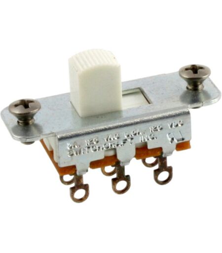 Switchcraft Slide Switch på-på i hvitt. Denne bryteren er utviklet for Jazzmaster® og Jaguar®-gitarene kjent for sin kjærlighetssanger Brian May. Den har en hvit knapp og leveres med skruer. Switchcraft krever en 3/4 "hulrom og en 5/16" x 9/16 "spor. Skruvavstanden er 1-1 / 8". En stilig erstatningsbryter til en rimelig pris. ...