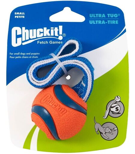 Chuckit Ultra Tug Ball med Håndtak – Slitesterk hundeleke for dra- og kasteleker Chuckit Ultra Tug er en solid hundeball med håndtak, utviklet for drakamp og apportlek – bygget for hunder som elsker aktiv lek. Kombinasjon av sprettball og sterkt grep – for hunder som vil leke mer Chuckit Ultra Tug er ikke bare en ball – det er også et multifunksjonelt dra- og kasteredskap for lekne hunder. Den robuste gummikjernen gjør at ballen spretter høyt, samtidig som nylonhåndtaket gir deg et sikkert grep ved drakamp. De sterke fargene på ballen gjør den lett å finne både i gress og grus. Velg mellom flere størrelser for å matche behovene til akkurat din hund. Perfekt for både interaktive draleker og for kastelek med Chuckit Launcher.Fordeler med Chuckit Ultra Tug Ball med Håndtak: Slitesterkt design: Ball i tykk gummi og håndtak i solid nylon. Spretter høyt: Skaper fartfylt lek også uten håndtak. Lett å se: Klare farger gjør leken lett å finne. Dra og kast: Fungerer både til drakamp og apportering. Flere størrelser: Finnes i små, middels store og store varianter. Vanlige spørsmål om Chuckit Ultra Tug Hvilken størrelse bør jeg velge ? Small: ca. 5 cm diameter Medium: ca. 6,5 cm diameter Large: ca. 7,6 cm diameter Velg etter hundens størrelse og bitestyrke. Er håndtaket sikkert for drakamp? Ja, det er laget av dobbeltvevd nylon som tåler tøff motstand. Leken bør som alltid overvåkes. ...