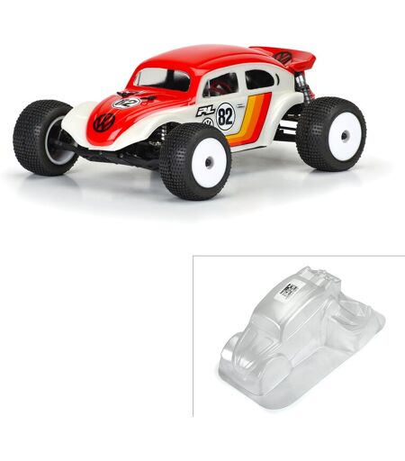 overview this is the classic pro-line volkswagen® baja bug, now for the losi® mini-t™ 2.0! the vw® baja bug is back with the same style, quality, and features as the popular 1/10 sc-sized version! this officially licensed retro classic body completely changes the look of your mini-t™ 2.0! from the flared fenders to the exposed rear engine details, to the add-on rear wing, the baja big is the coolest and most unique body option on the market. proudly made in the usa, the baja bug is made from lightweight polycarbonate material that will give you an edge over the competition. the body comes clear to give you the option to paint the body however you desire. paint-then-peel overspray film, window masks, and pro-line decals are included with the body. hit your track, driveway, or favorite bash spot in fresh, pro-line style with the vw® baja bug for your mini-t™ 2.0! this is sold as a clear and unpainted body. image of the painted body is only to display details. no vehicle chassis is included with this product. pro363300 volkswagen® baja bug clear body for mini-t™ 2.0 features classic vw® bug styling with baja flair simulated rear engine detail just like the stock motor optional add-on spoiler officially licensed by volkswagen® fits your mini-t™ 2.0 perfectly paint then peel overspray film built-in made with crystal clear polycarbonate made in the usa four steps to off-road ready clean body and apply included window mask paint then peel the over-spray film off sticker your body mount your new body onto your mini-t™ 2.0 fits losi® mini-t™ 2.0 volkswagen® trademarks used under license to pro-line. product specs body style: volkswagen baja bug color: clear material: polycarbonate product height: 3" (76 mm) product length: 9.2" (234 mm) product width: 3.65" (93 mm) scale: 1/18 vehicle type: stadium truck wheelbase: 6.4" (163 mm) ...