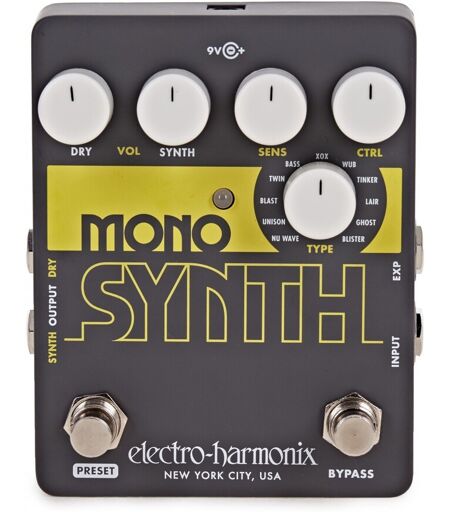 Synth Salvation. Electro Harmonix Mono Synth gitar Synthesizer vil forandre verden. Hvis du er en gitarist men du finner deg selv lengt etter litt synth i sangene dine er dette svaret. Den holy grail av synthpedaler det vil gi deg muligheten til å slå ledelinjene til forførende synthmesterverk. Med et vell av forskjellige synthtyper å velge mellom vil du bli spellbound av sin super lyd. ...