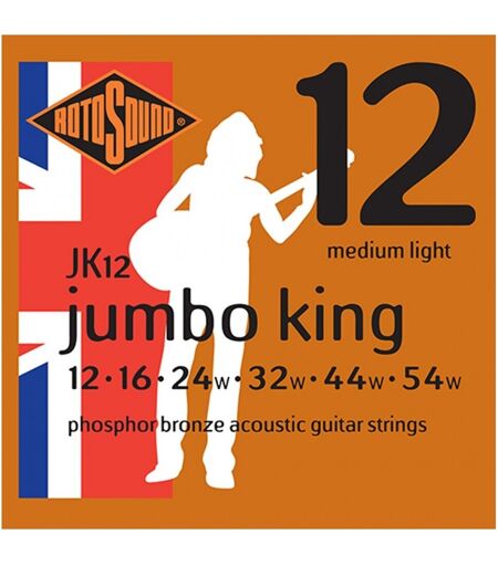 Rotosound Jumbo King JK12 Phosphor Bronze Strings er et eksepsjonelt høy kvalitet langvarig og fantastisk lydsett med 12-54 gauge akustiske gitarstrenger som har blitt legendariske blant mange akustiske gitarister på grunn av at det er 50 år å gi varm og skarp tonalitet som gjør dem til en favoritt valg for mange profesjonelle musikere som Bob Geldof og Noel Gallagher. ...