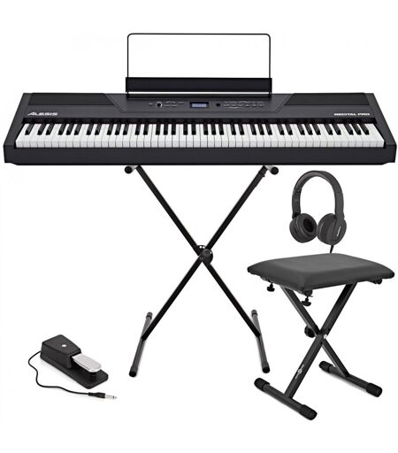 Alesis Recital Pro 88 Note Digital Piano er et pedagogisk piano som er ideelt for nybegynnere. Med 88 hamer-action-tangenter i full størrelse med justerbar berøringsrespons lar Alesis Recital Pro deg justere innstillingene for en mer komfortabel spilleøkt. The Recital Pro har en "leksjonsmodus" slik at du kan spille sammen med en veileder. Det inkluderer også tre måneder med dyptgående pianokurs med Skoove-premium. Med 12 innebygde realistiske stemmer gir Alesis Recital piano optimal allsidighet. Alesis Recital Pro har et opptaksmodus som lar deg spille og lytte til forestillingene dine noe som er ideelt for kritisk lytting. Alesis keyboardet har utganger for tilkobling til miksere høyttalere og hodetelefoner og gir mulighet for privat trening og live opptredener. Alesis Recital Pro-pianoet er ideelt for alle som ønsker å forbedre spillingen sin eller lære å spille piano. ...