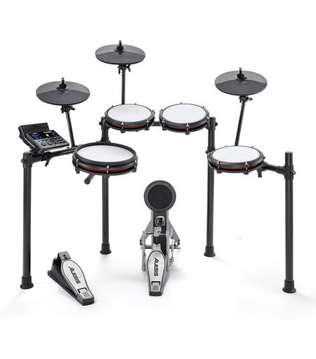 Det elektroniske trommesettet Alesis Nitro Max er en game-changer for trommeslagere og gir en autentisk spilleopplevelse uten at det går på bekostning av lydkvaliteten. Settet inneholder en 10 to soners mesh-skarptromme tre 8 mesh tom pads et kick drum tower med pedal en 10 crash cymbal med choke en 10 ride og en 10 hi-hat med fotkontroll. Settet leveres også med et robust aluminiumstativ med 4 stolper tilkoblingskabler trommestikker en trommenøkkel og en strømforsyning. Ikke nok med det! Med Nitro Max får du et gratis BFD Player virtuelt trommeinstrument med en utvidelsespakke som inneholder spilleklare sett og over 400 tromme- cymbal- og perkusjonslyder for alle musikkstiler. Settet inneholder også 60 innebygde play-along-spor en sequencer en metronom og en opptaker. Med Bluetooth lydstrømming kan du enkelt spille med på favorittmusikken din trådløst. Som bonus får du et 90-dagers gratis abonnement på Drumeo der du får tilgang til ubegrenset antall leksjoner fra instruktører i verdensklasse og et 30-dagers gratis abonnement på Melodics Premium med eksklusive leksjoner for å forbedre ferdighetene dine. ...