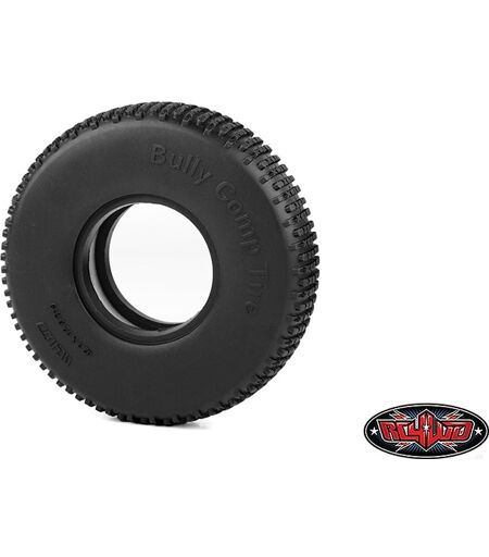 rc4wd bully competition 1.9'' scale tires specifications: advanced x2s³ compound fits 1.9" wheels outer diameter: 4.21in / 107mm width: 1.25in / 32mm inner diameter: 1.81in /46.0mm each tire weighs: 1.51oz / 43.0g note: 2 stage foam with different densities for additional performance! what's included: 2x rc4wd bully competition 1.9'' scale tires 2x 2 stage foam inserts notes: this tire is designed to fit 1.9" wheels only for complete truck, you will need 2 sets of this product due to many different methods to design tires and wheels, we have no control over other manufacturers products. so we can only tell you that rc4wd tires and wheels work together. in some cases, our wheels and tires will work with other brand wheels and tires, but we can not guarantee the outcome. can't find the tires you are looking for? click here to use our rc4wd tire finder guide! ...