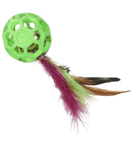 Hvilken katt liker ikke å jakte? Dette er en ball som inneholder en bjelle som på denne måten også utløser auditive sinn for lek og jakt. De har også fjærer som holder leketøyet oppe. Med dette leketøyet vil du gi katten din masse morsomme timer med moro og moro! Selve ballen er laget av slitesterk, giftfri gummi som omgir den store bjellen. Leketøyet er den perfekte størrelsen for at katten din skal kunne pakke den inn med labbene og deretter begge kunne plukke den opp og gjemme den. ♥ Størrelse: Ballens diameter er omtrent 5 cm. Total lengde inkludert våren er ca 15cm ♥ Farge: Grønn med flerfargede fjær ♥ Overvåk alltid katten når den leker. ...