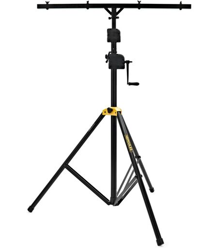 På tide å heve produksjonsverdien! Hercules LS700B Quick-N-EZ autolåsende lysstativ er en av de beste belysningsstandene rundt. LS700B har en aluminiumskonstruksjon og er lett men likevel robust nok til selv de mest krevende turene. Det som virkelig gjør Hercules LS700B stativ spesiell er Quik-N-EZ Gear up System. Dette systemet gjør det mulig for en person å heve og senke stativet trygt - selv når det er fullastet. For ekstra sikkerhet er det en låsepinne og håndknott slik at du kan stramme hovedrøret. Lysene dine blir festet til den firkantede T-stangen med de medfølgende skruene helt øverst. Med en brukervennlig klipp kan montering av stativet ikke være mer enkelt. For å sikre at lysene dine er sikre når du er på Hercules LS700B er beina dobbeltstøttet. Denne typen forsterkning styrker hele stativet uten overvekt. ...