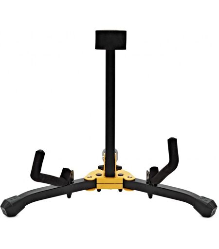 Hercules mini akustisk gitarstativ er en fantastisk kompakt og mobil løsning for utøvere for å stå trygt på sin akustiske gitar. Stativet har låsepinner som enkelt kan festes samtidig som det er svært sikkert. Spesielt formulert gummiskum er festet til kontaktpunktene for å beskytte instrumentet mot riper og bulker. Stativet har et alt-i-ett-design som kan foldes ned til en liten og lett transportert størrelse. En bæreveske er inkludert for enkel transport. ...