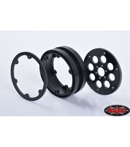 rocker 2.2" lightweight competition beadlock wheels rc4wd now offering lightweight competition beadlock wheels for the crawler market. the lightweight design offers a multiple offset hex design that allows for easy width placement on your comp crawler. three screw design allows for easy offset adjustment. specifications: carbon fiber and delrin material aluminum hex hub optional center hubs fit standard 12mm hex fit 2.2" size tires wheel size: 2.2" wheel width: 0.99in / 25.3mm positive offset: (0.7in / 17.8mm) / (0.59in / 15mm) / (0.82in / 20.9mm) center hole od: 0.27in / 7mm od: 2.2in / 56.2mm each wheel weighs: 2.4oz / 61g what's included: 2x front faces (black) 2x middle rings (black) 2x rear beadlock ring (black) 2x 7mm offset hex hub (silver) 2x 10mm offset hex hub (silver) 2x 13mm offset hex hub (silver) 24x m3 x 6mm bhcs (z-s0651) 6x m3 x 8mm bhcs (z-s0652) notes: this wheel fits the rock beast ii scale 2.2" rc tires sold in pairs. for complete truck you will need 2 of this item. this wheel comes with three hex offset options to allow you to setup the width you would like. due to many different methods to design tires and wheels, we have no control over other manufacturers products. so we can only tell you that rc4wd tires and wheels work together. in some cases our wheels and tires will work with other brand wheels and tires, but we can not guarantee the outcome. < ...