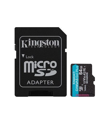 Kingston 64GB microSDXC Canvas Go Plus Gen4 200MB/s A2 U3 V30 Card + Adapter